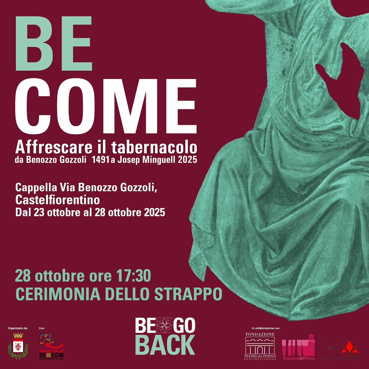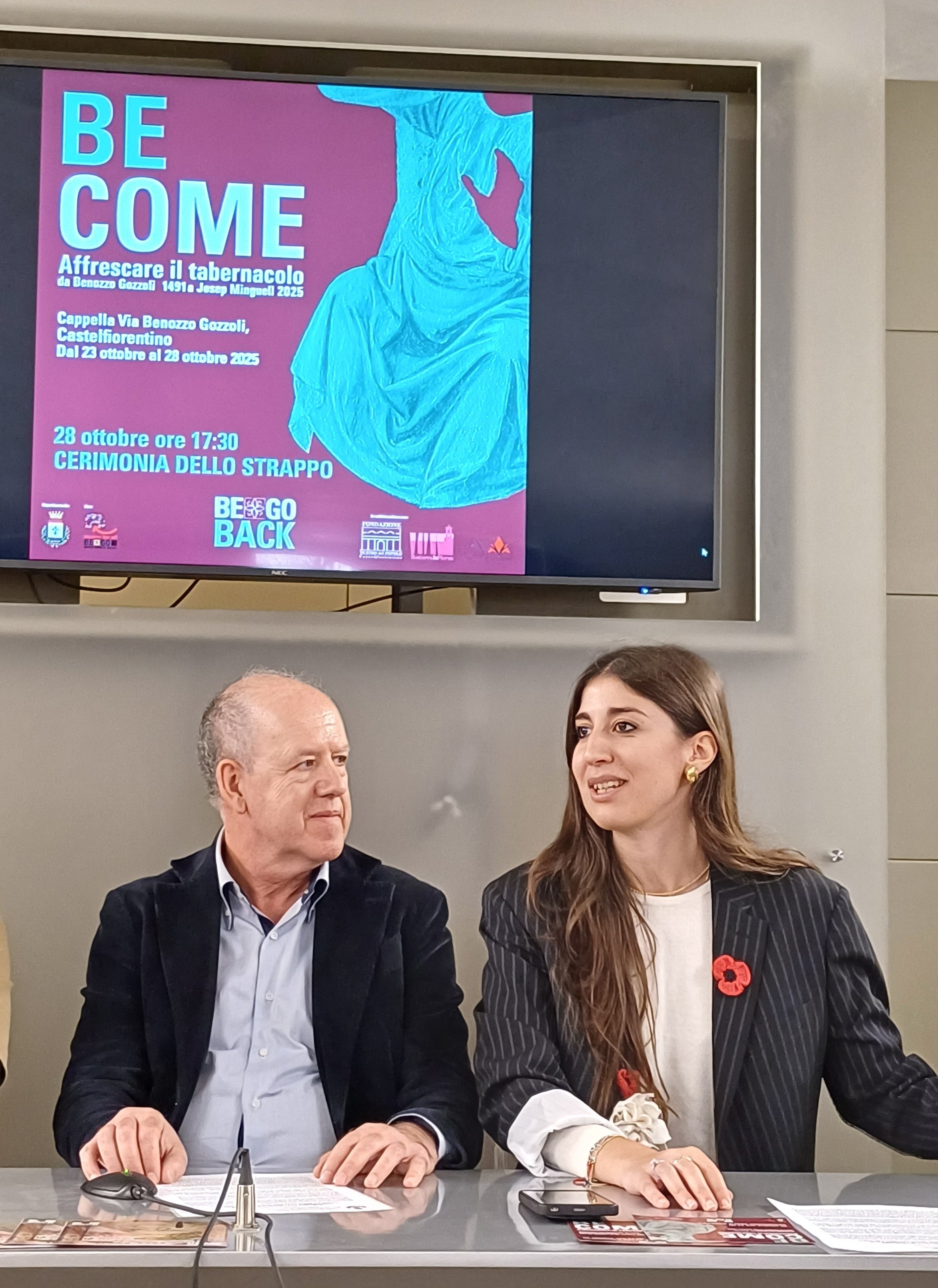 “Siamo molto felici – osservano la Sindaca di Castelfiorentino, Francesca Giannì, e l’Assessore alla Cultura, Franco Spina - di questa prima edizione di Be.Go. Back 2025, un percorso artistico che vede protagonista Benozzo Gozzoli con una serie di residenze artistiche e mostre temporanee nei luoghi d'elezione dell'artista fiorentino, in particolare la Cappella della Visitazione di via Gozzoli a Castelfiorentino. Il focus di questo primo "capitolo", "BeCome", con l'artista catalano di fama internazionale Josep Minguell, è stata la tecnica dell'affresco con un processo performativo aperto al pubblico, finalizzato all'approfondimento delle fasi di realizzazione di questa tecnica millenaria e alla creazione di un'opera in dialogo con il ciclo mariano del tabernacolo originale.