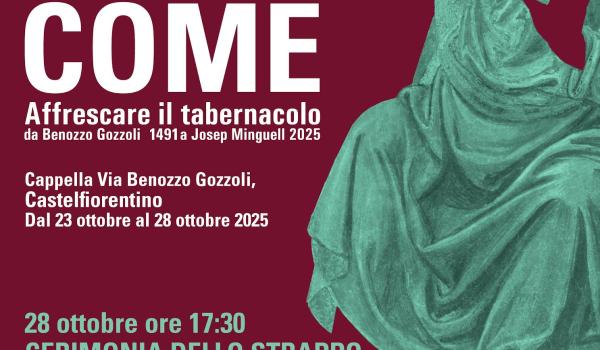 “La mia è una pittura simbolica, che definisce un immaginario popolare, in cui il vero protagonista non è il pittore, ma il pubblico”. Con queste parole Josep Minguell ha inteso riassumere l’autentico significato della sua pittura e dei suoi affreschi, nei quali il pubblico non è solo destinatario finale ma anche pienamente partecipe e fruitore di tutte le fasi che precedono la loro realizzazione. Un metodo di lavoro che l’artista catalano ha ripercorso integralmente nel progetto “BeCOME - Affrescare il tabernacolo. Benozzo Gozzoli 1491 - Josep Minguell 2025”, che proprio in questi giorni volge al termine e culminerà martedì 28 ottobre con la cerimonia – a “porte aperte” - dello “strappo” dell’affresco realizzato nella Cappella di via Benozzo Gozzoli di Castelfiorentino (FI).