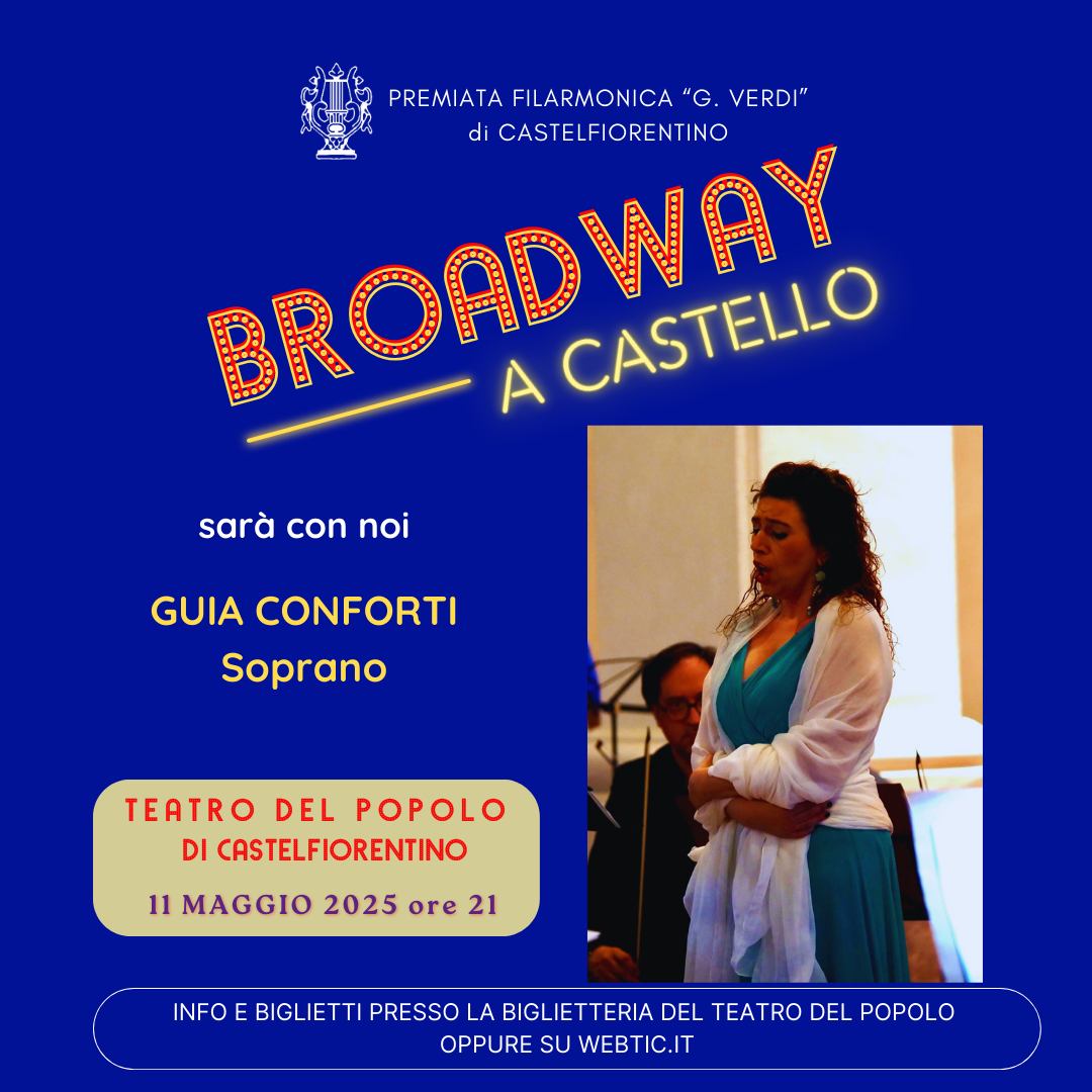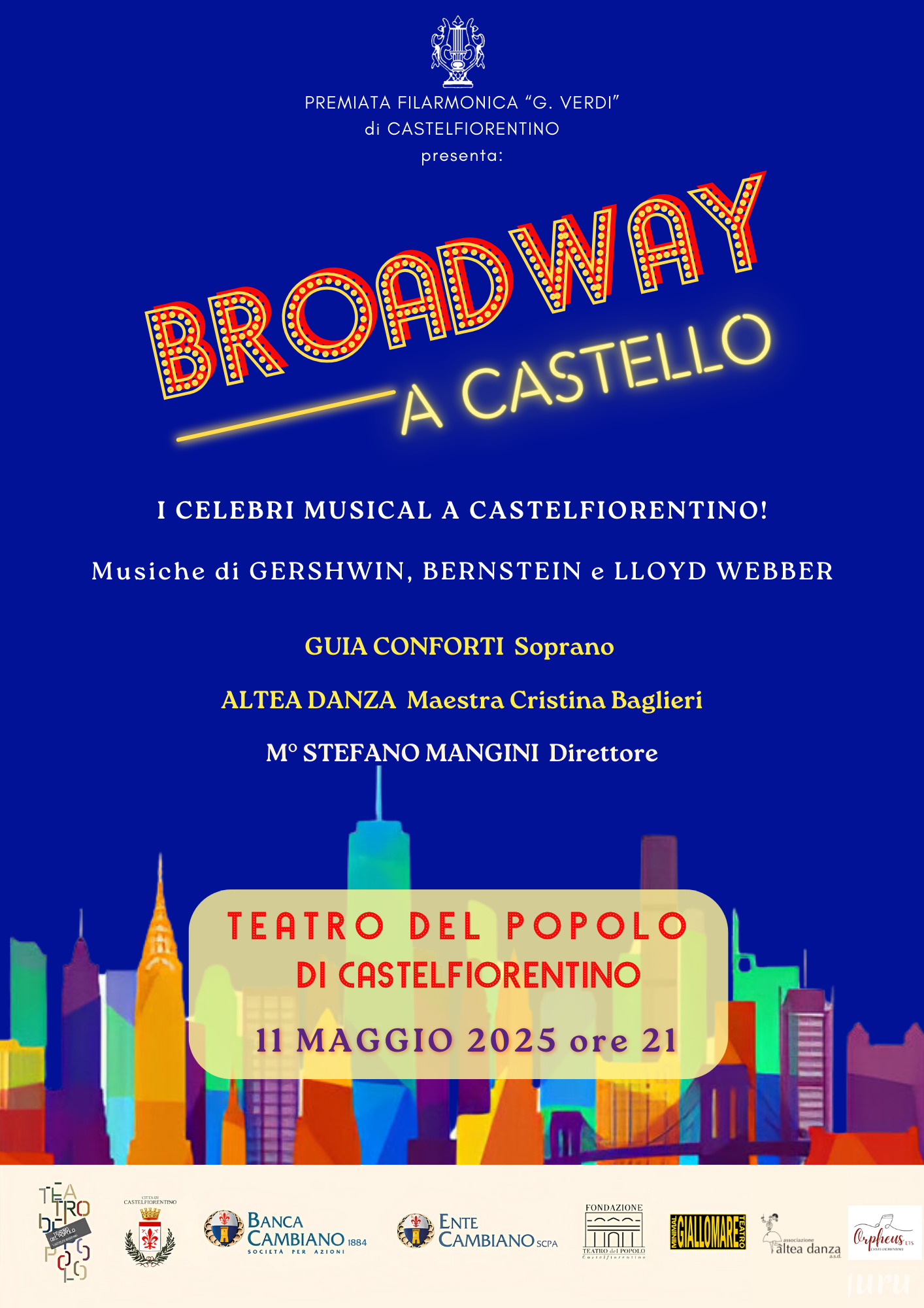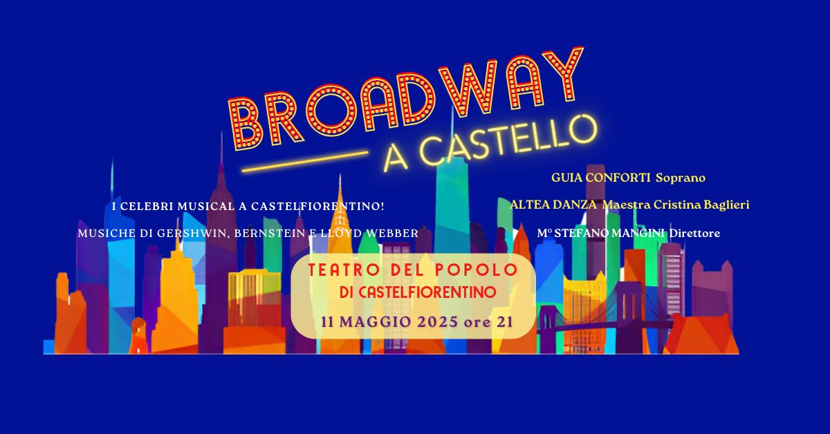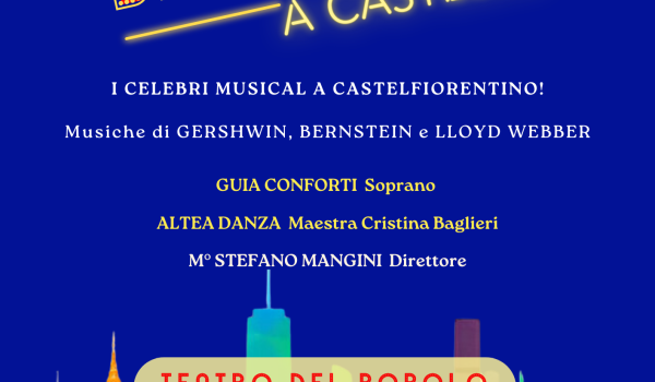 Da Jesus Christ Superstar a West Side Story, da Porgy and Bess a Candide. I brani immortali dei più celebri musical arrivano domenica 11 maggio al Teatro del Popolo (inizio ore 21.00) in una serata dal titolo “Broadway a Castelfiorentino”, che vedrà sul palco la Filarmonica “G. Verdi” eseguire in concerto i capolavori di Bernstein, Gershwin, Webber e molti altri, con la partecipazione del soprano Guia Conforti e le allieve della scuola “Altea Danza” diretta da Cristina Baglieri.