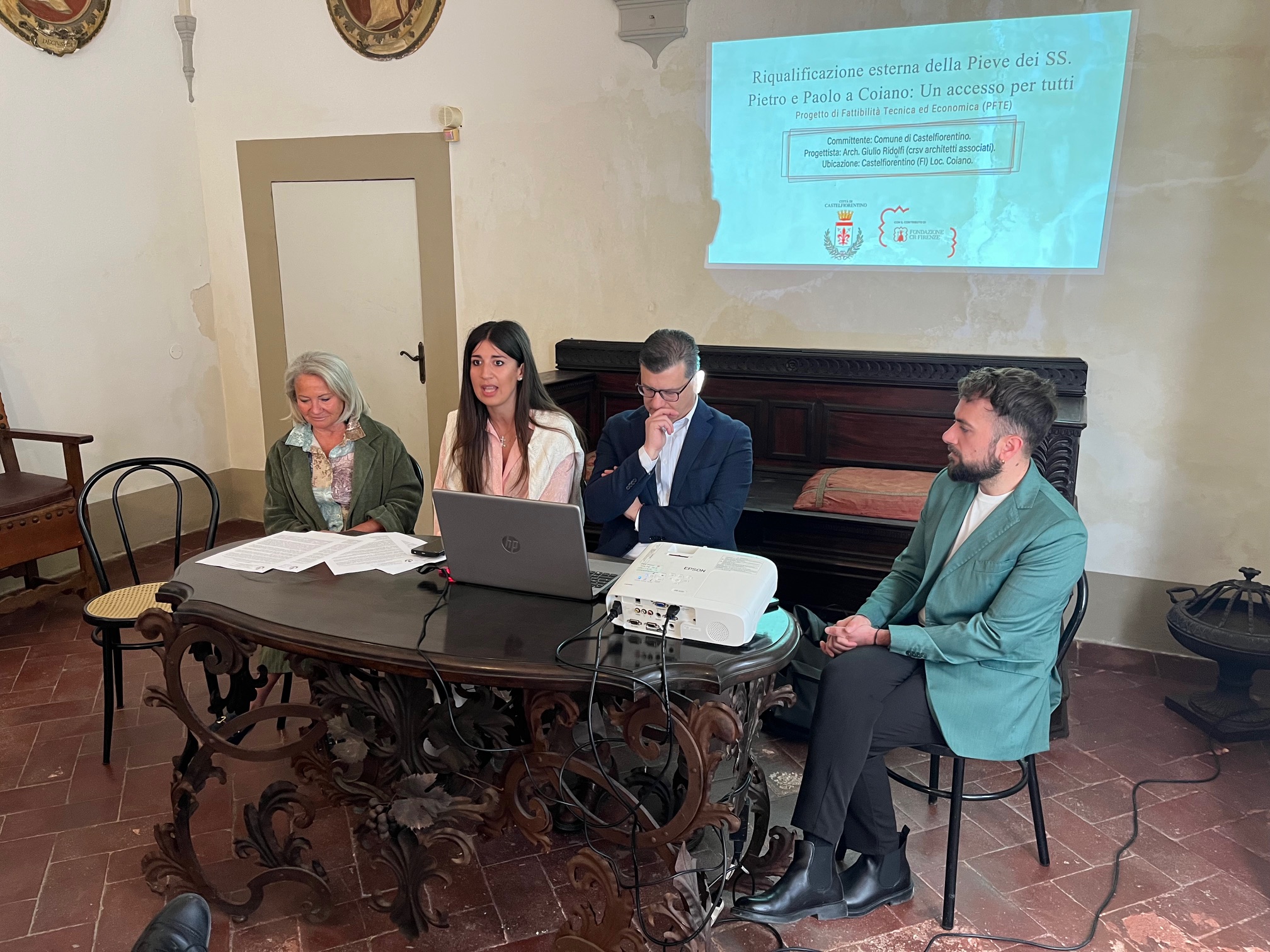 Sono intervenuti la Sindaca di Castelfiorentino, Francesca Giannì, la Vicepresidente della Fondazione CR Firenze, Maria Oliva Scaramuzzi, Don Maurizio Volpi (parroco della Parrocchia dei Santi Pietro e Paolo a Coiano), l’Assessore alla Cultura, Franco Spina, oltre ai tecnici e progettisti (l’Ing. Manrico Padovani per il Comune di Castelfiorentino e l’Arch. Giulio Ridolfi, CRSV Architetti Associati).