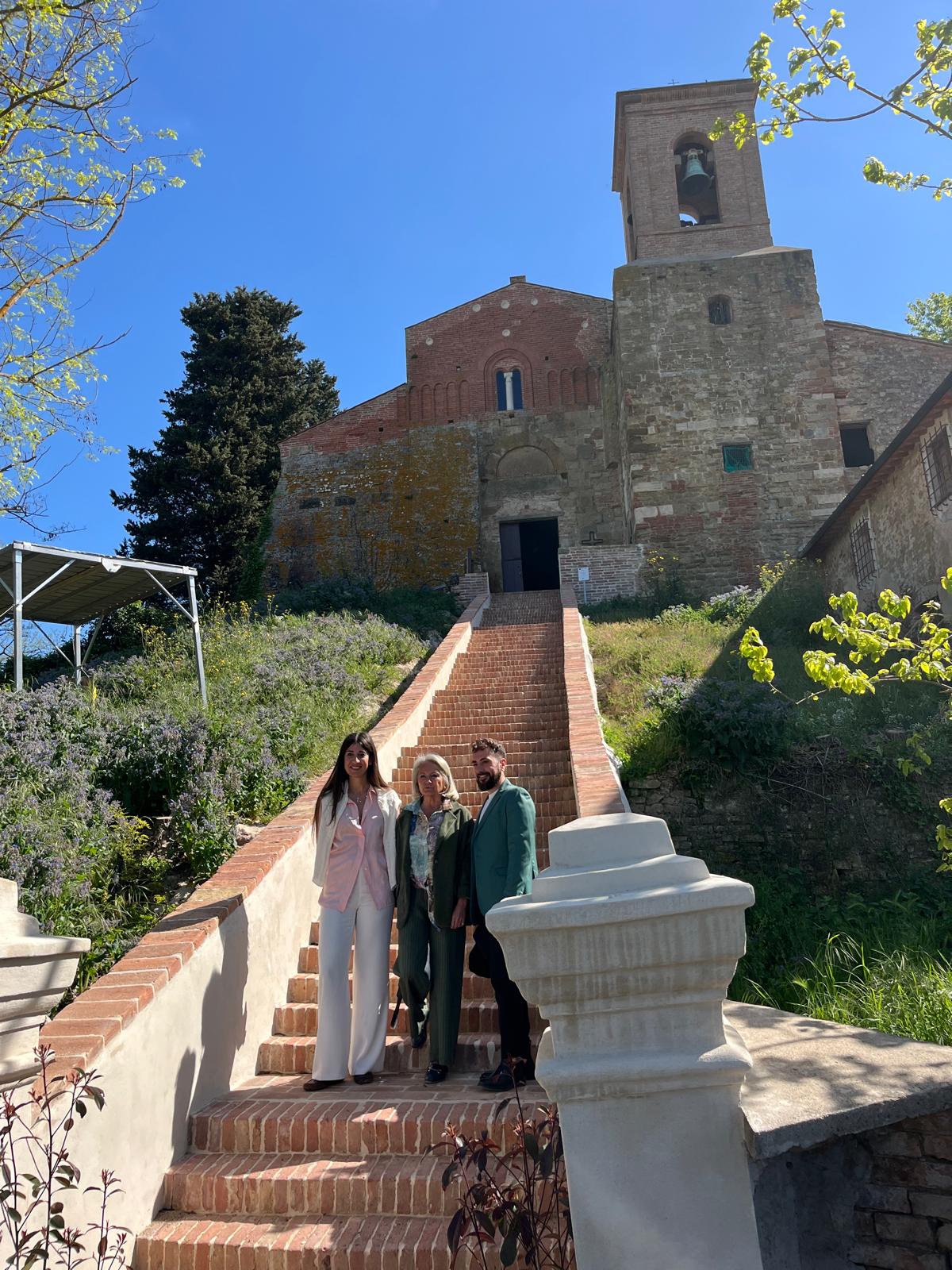 Contestualmente, il Comune di Castelfiorentino (che in virtù di un contratto di comodato aveva già realizzato un parcheggio e una sosta attrezzata per i turisti) ha avviato le fasi progettuali per la riqualificazione dell’area esterna, attraverso un confronto con la Sovrintendenza cui spetta – essendo l’area sottoposta come la Pieve a vincolo monumentale – un’autorizzazione preventiva. Il nuovo progetto, per una spesa preventivata di 230.000 euro (di cui 115.000 sostenuti dalla Fondazione CR Firenze) prevede la realizzazione di due percorsi pedonali, interni al Parco, che consentiranno a coloro che usufruiscono del parcheggio o dell’area di sosta attrezzata di raggiungere agevolmente la scalinata oppure – nel caso di persone con ridotte o impedite capacità motorie – direttamente il portone di ingresso della Pieve, utilizzando a tal fine un servoscala. In entrambi i percorsi ci sarà la possibilità di fruire di una deviazione verso un “luogo di quiete”, a forma circolare e in mezzo all’oliveta, per offrire un’opportunità di riposo, di raccoglimento e di riflessione. Il parco sarà infine riqualificato con una più ordinata sistemazione delle specie arboree e arbustive, al fine di valorizzare la percezione visiva di tutto il complesso monumentale. L’intero intervento sarà completato nella primavera 2027.