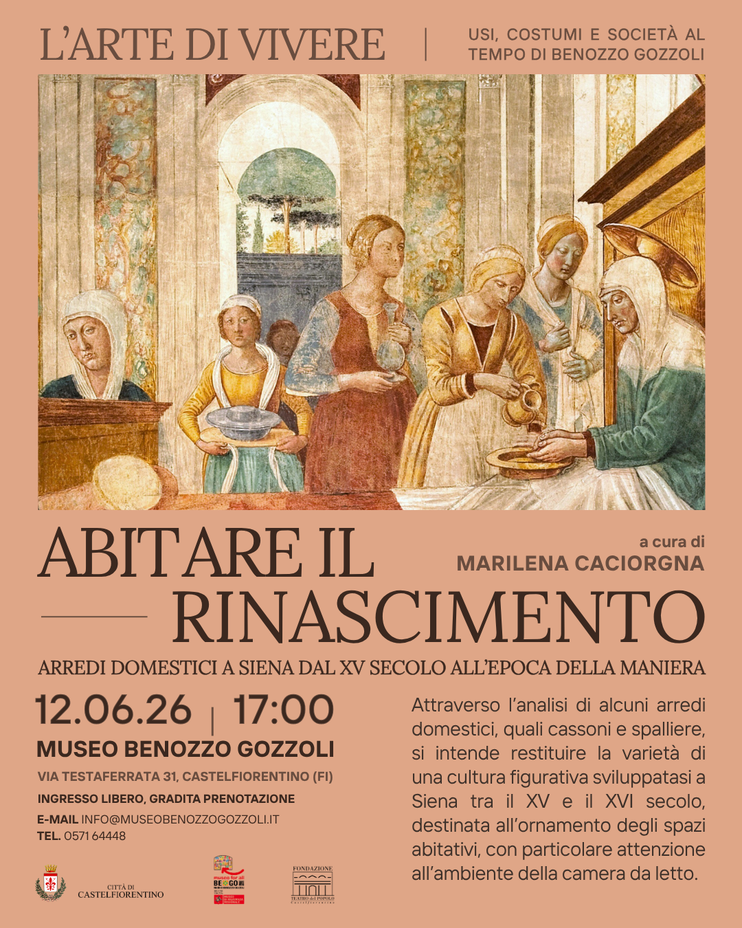 Attraverso una serie di approfondimenti tematici, il ciclo intende restituire uno spaccato vivido della vita quotidiana nel Rinascimento, prendendo le mosse dagli affreschi dei due tabernacoli realizzati da Benozzo Gozzoli e conservati al BeGo, preziosa testimonianza figurativa delle tradizioni diffuse nella società del periodo.