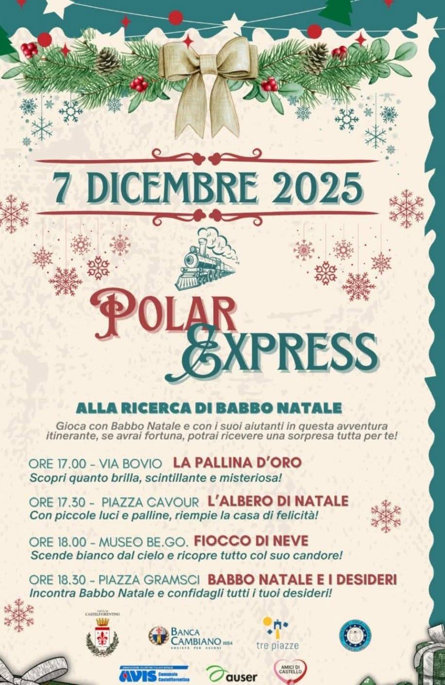 Per tutti i bambini che desiderano invece incontrare Babbo Natale in carne e ossa appuntamento a domenica 7 dicembre (dalle 15.30) presso la “Casina di Babbo Natale” in Piazza Gramsci (al centro del mercatino), dove ci sarà la distribuzione di caramelle, una piccola sorpresa e sarà possibile scattare una foto ricordo (ci sarà anche una inedita “mamma Natale”). A seguire “Polar Express”, un grande gioco itinerante “alla ricerca di Babbo Natale” che si svolgerà in 4 diverse postazioni. I partecipanti potranno ritirare gratuitamente le cartelle-gioco presso i negozi che aderiscono l’iniziativa, e dopo aver individuato sul retro luogo e orario del gioco potranno recarsi nella postazione indicata: dalla “Pallina d’oro” (via Bovio, ore 17) all’”albero di Natale (Piazza Cavour, ore 17.30), dal “Fiocco di neve” (Museo Be.Go., ore 18) al “Babbo Natale e i desideri” (Piazza Gramsci, ore 18.30). In palio numerosi premi. Questi i negozi dove si potranno ritirare le cartelle-gioco: La Futura, Vita di Romanella, Selandia Viaggi, Benetton, Ottica Bastianoni, Libri & Persone, Isa Intimo, Spinelli, AR Stilisti per Capelli. Cappellini, Retrò, Oz, Tato e Tata, La Fonte del gelato, Cianchi, Sinergia, Civico 73, Mareblu.