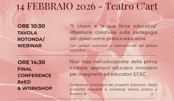 Nel pomeriggio (dalle 14.30) è in programma la conferenza finale del progetto “ReED__Nasi rossi nell’educazione della prima infanzia”, che prevede la presentazione dei risultati progettuali e dell’Handbook per insegnanti, educatori ECEC e genitori seguito da un workshop teorico/pratico a cura di André Casaca. Per partecipare basta compilare il breve modulo a questo link https://forms.gle/zdkp5mPaK25YqXon6