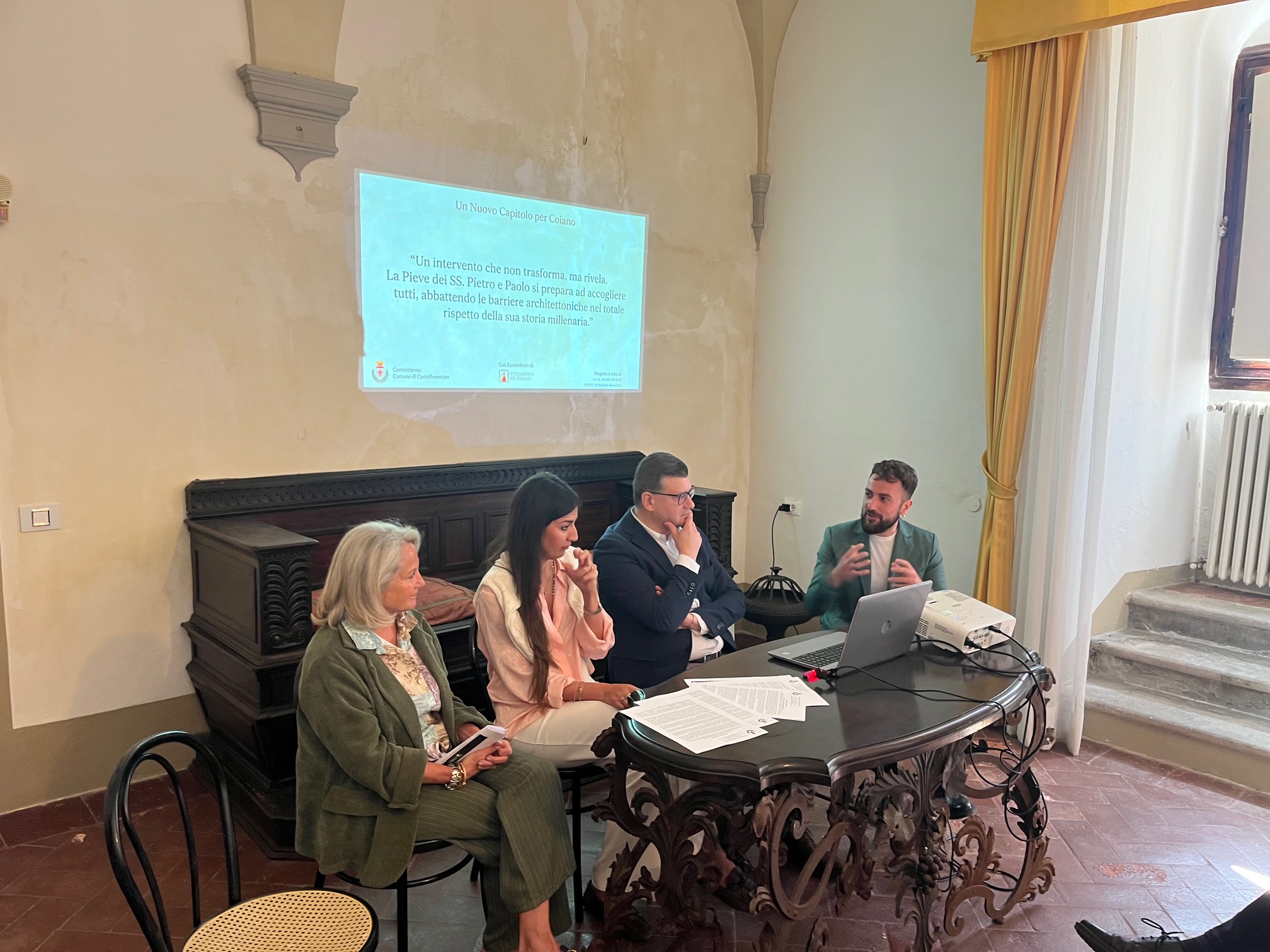 I lavori di restauro e il nuovo progetto sono stati illustrati questa mattina nel Castello di Coiano (una struttura ricettiva ubicata nei pressi della Pieve) nel corso di una conferenza stampa promossa dal Comune di Castelfiorentino e dalla Fondazione CR Firenze, da molti anni impegnata nel recupero, nella ristrutturazione e nel restauro della Pieve, in una visione di sviluppo territoriale che lega tutela del patrimonio storico artistico, turismo sostenibile e identità locale.