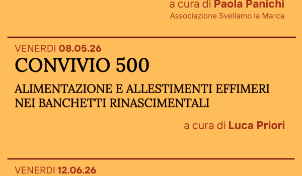 Si prosegue venerdì 8 maggio, ore 17.00, con “Convivio 500 – alimentazione e allestimenti effimeri nei banchetti rinascimentali” intervento curato dello studioso Luca Priori che avrà come focus l’usanza signorile, sviluppatasi nelle corti italiane, di presentare le vivande sulle proprie tavole creando dei veri e propri spettacoli gastronomici, alla ricerca di una sofisticata ostentazione estetica. Pasticci in crosta, volatili, arrosti, umidi, paste ripiene, torte di varia foggia, si alternavano a balli, musiche e costruzioni semoventi: il tutto condito da precise norme legate all’etichetta. Un'esperienza effimera ma al contempo sostanziale, un investimento che garantiva accordi dinastici e consenso e che celebrava la gloria del bello.